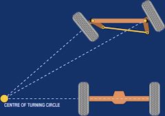 На обоих рисунках колеса выставлены в прямолинейное положение, но на левом рулевой редуктор выставлен в центральное положение, сошки рулевого редуктора и маятника параллельны лонжеронам, а длины боковых рулевых тяг одинаковы, рулевое представляет собой равнобокую трапецию. на правом рисунке рулевое колесо переставляли, редуктор не в центральном положении, и хотя колеса и руль тоже стоят прямо, длина боковых тяг неодинакова, рулевое представляет собой косую трапецию. Нажмите для просмотра прикрепленного файла